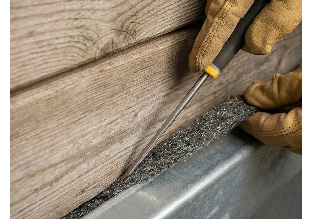 Dank der Rückstellkraft der Synthetikfasern verankert sich RaxWool fest in Öffnungen und lässt sich nicht einfach von Nagetieren herausziehen. Gleichzeitig bildet das dichte Gewebe eine wirksame Barriere, die nicht nur Nager, sondern auch Insekten fernhält.